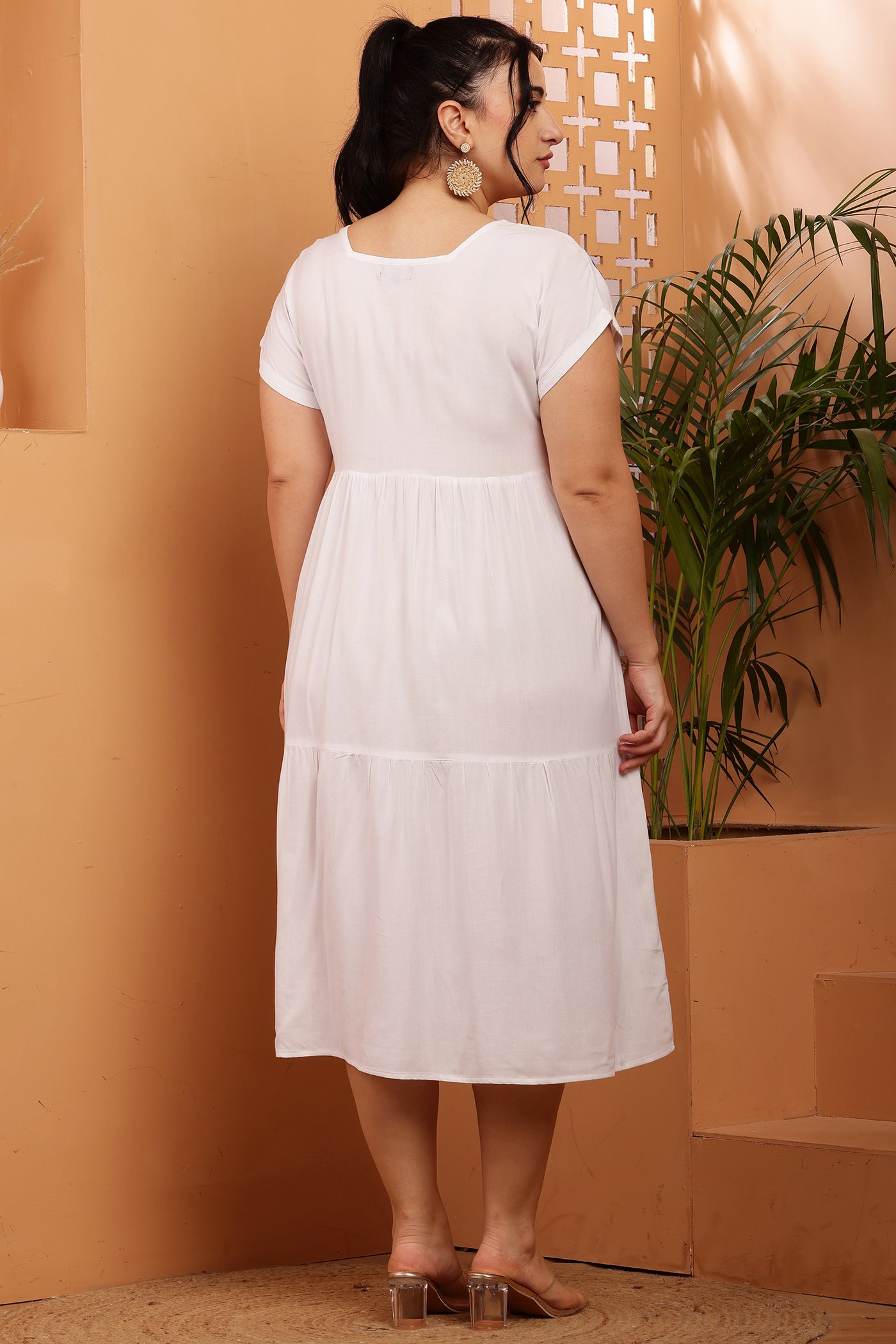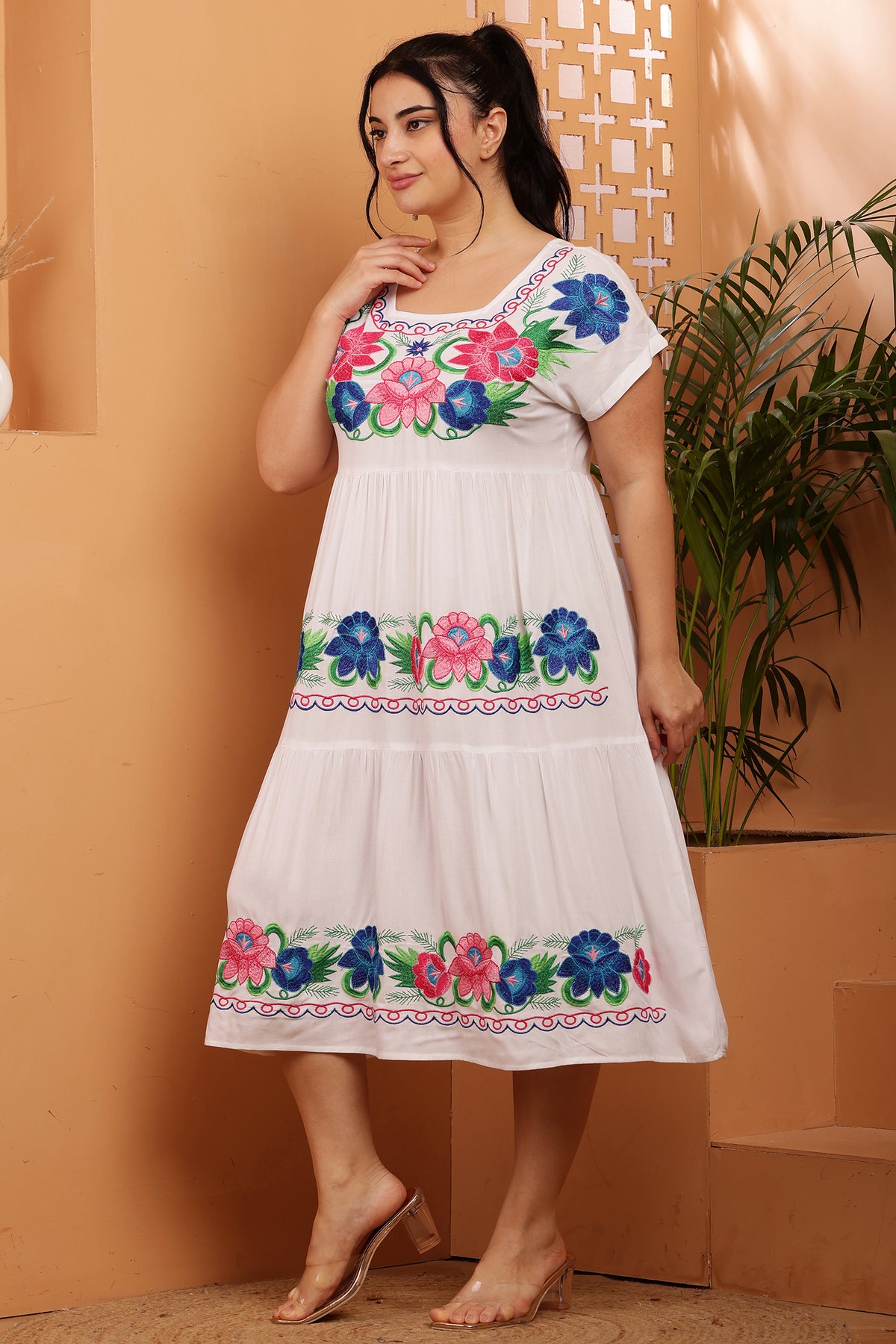Elevate your fashion collection with the timeless beauty of our Two-Tiered Embroidery Cap-Sleeves Kurta from Tanvastr, where detailed craftsmanship meets modern style.