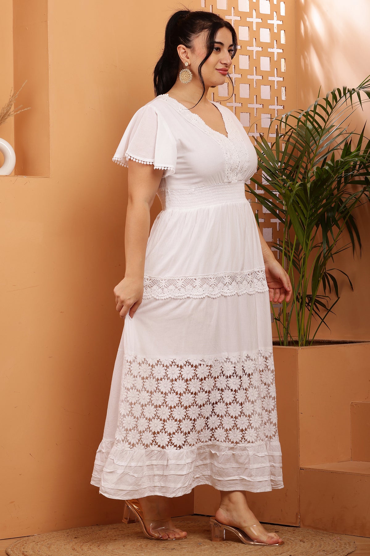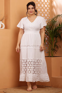 Flair Floral Lace Maxi Dress - White / XS