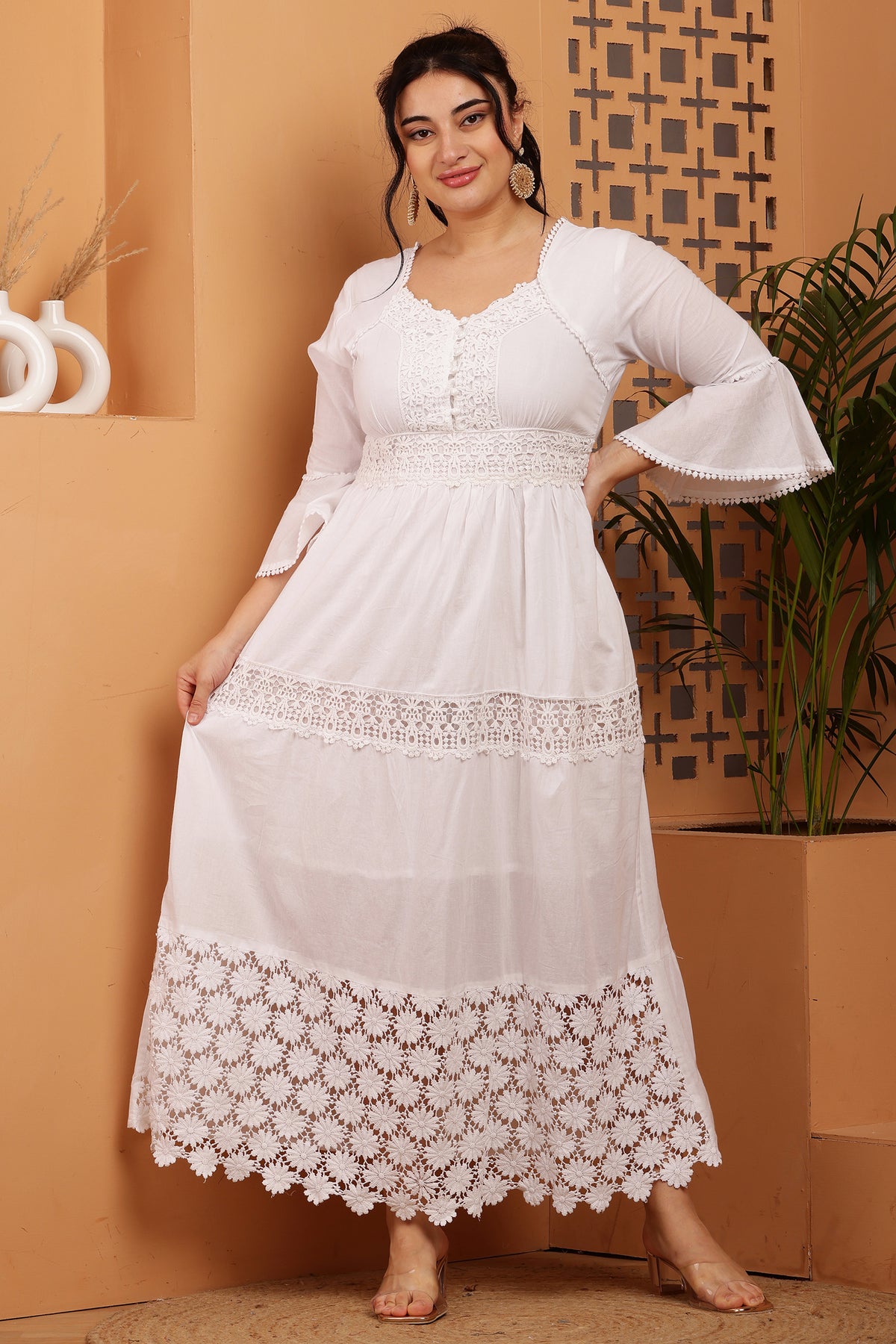 Flair Floral Lace Maxi Dress - White / XS