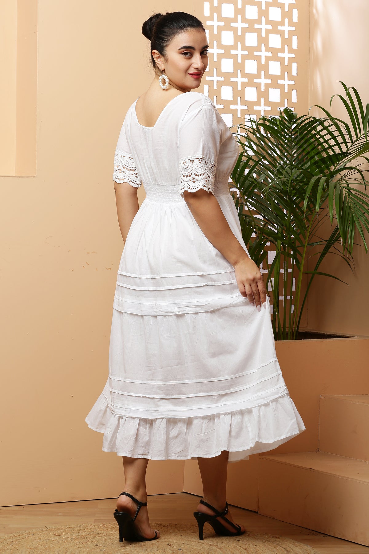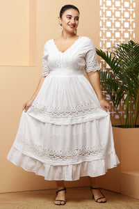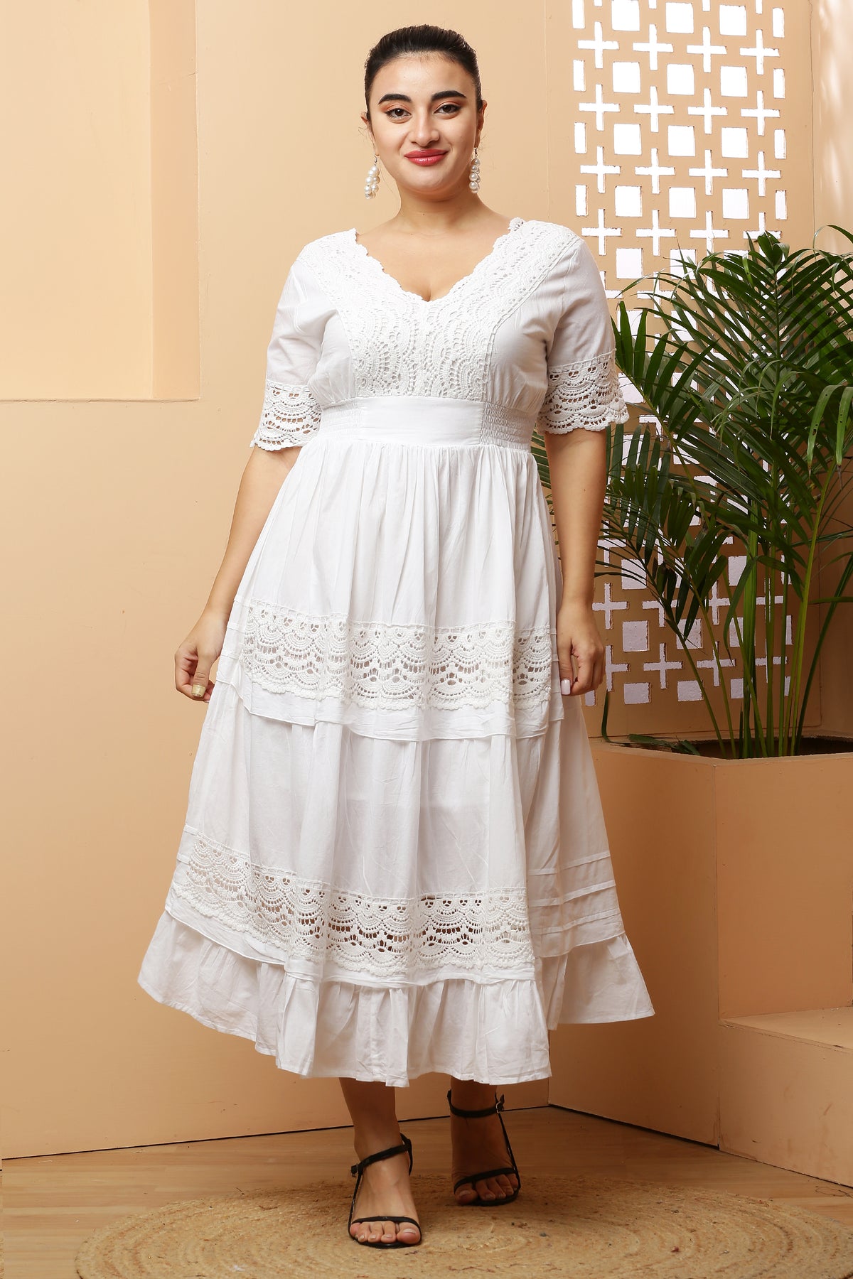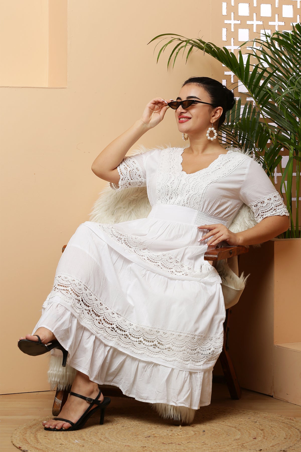 and exquisite cut work lace detailing for a sophisticated and feminine look. The adjustable waistline ensures